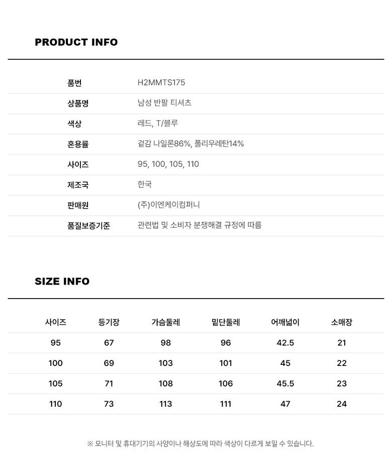 1. 제품 소재 (섬유의 조성 또는 혼용률을 백분율로 표시, 기능성인 경우 성적서 또는 허가서) | 상품 이미지 참조 |