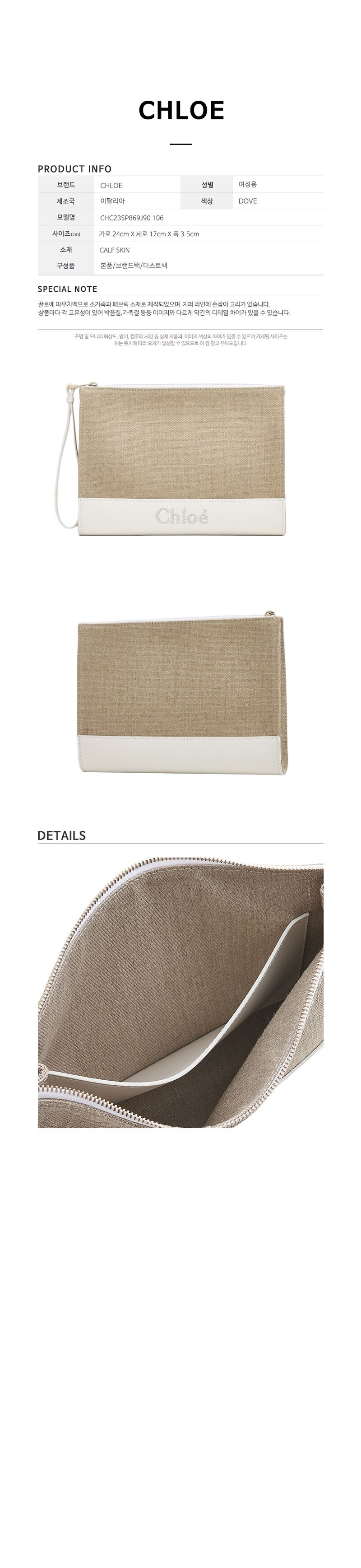 - #리본즈코리아 #CHC23SP869J90106 #[명품] #끌로에 #여성 #SENSE #센스 #로고 #클러치백 #도브 #CHC23SP869J90 #106 #가방/핸드백 #클러치/파우치 #클러치