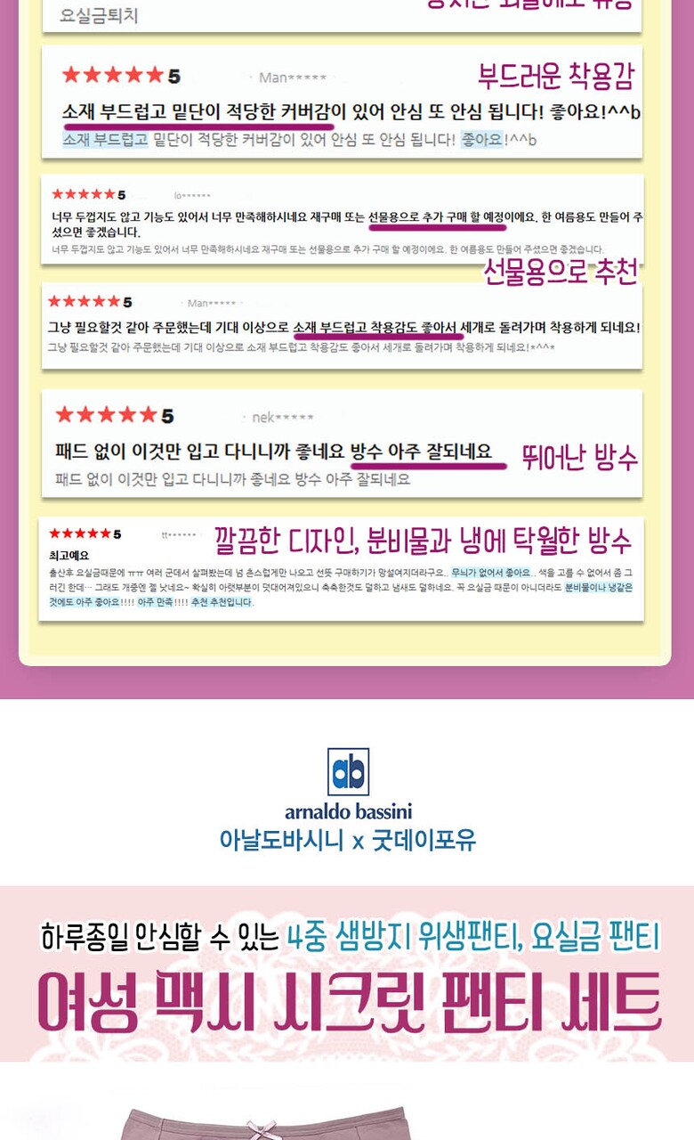 아날도바시니 여성맥시시크릿 방수요실금팬티 3매세트