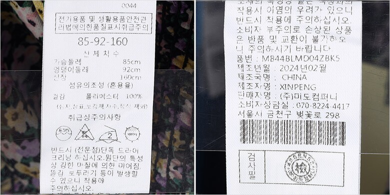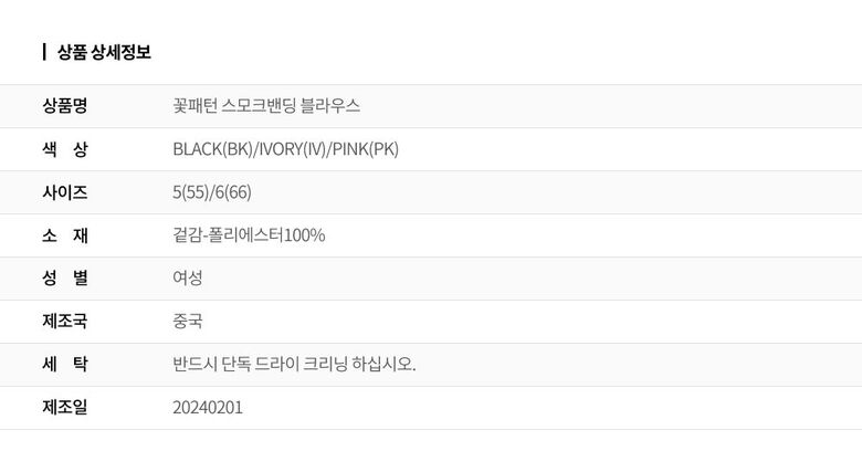 | 6. 세탁방법 및 취급시 주의사항 | 상세페이지 참조 |