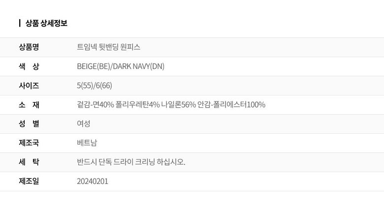 2. 색상 색상:BEIGE(BE)/DARK NAVY(DN)