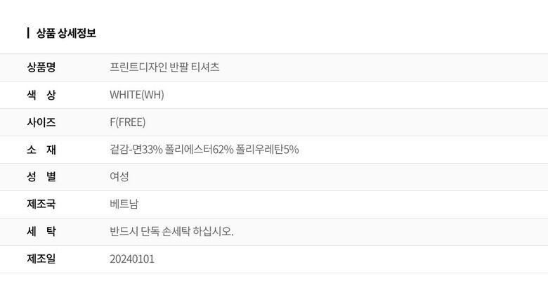 6. 세탁방법 및 취급시 주의사항 상세페이지 참조