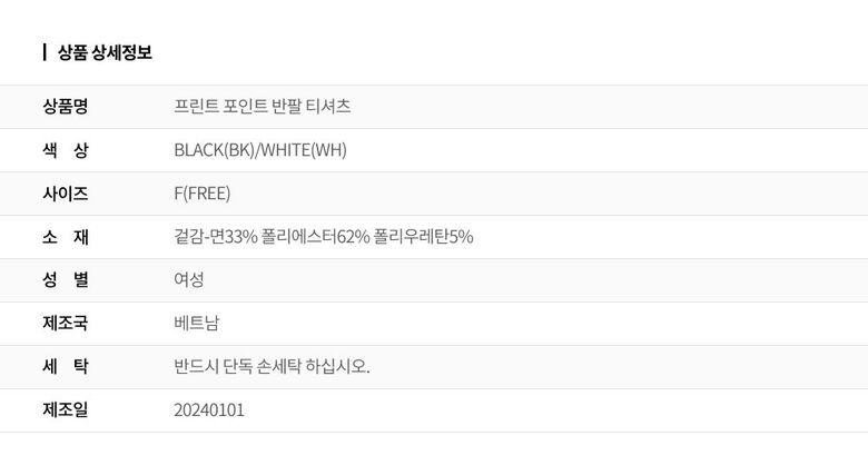 | 6. 세탁방법 및 취급시 주의사항 | 상세페이지 참조 |