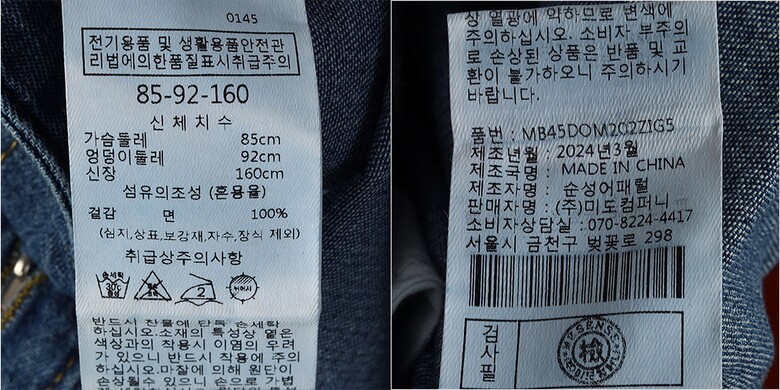 | 1. 제품 소재 (섬유의 조성 또는 혼용률을 백분율로 표시, 기능성인 경우 성적서 또는 허가서) | 겉감-면100% |