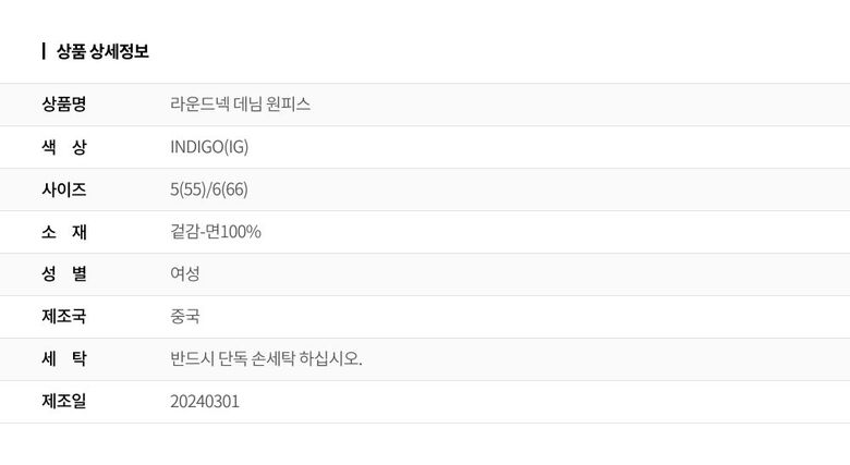 | 6. 세탁방법 및 취급시 주의사항 | 상세페이지 참조 |