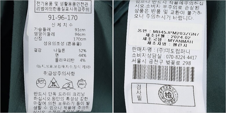 | 6. 세탁방법 및 취급시 주의사항 | 상세페이지 참조 |