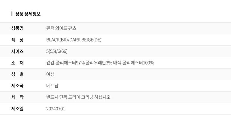 | 6. 세탁방법 및 취급시 주의사항 | 상세페이지 참조 |