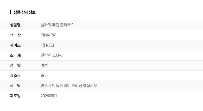| 6. 세탁방법 및 취급시 주의사항 | 상세페이지 참조 |