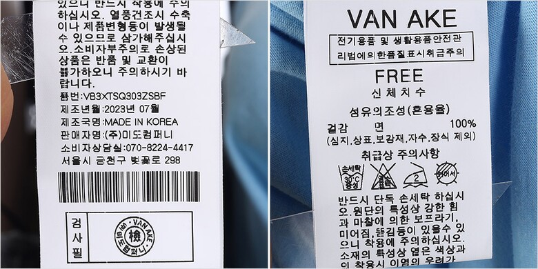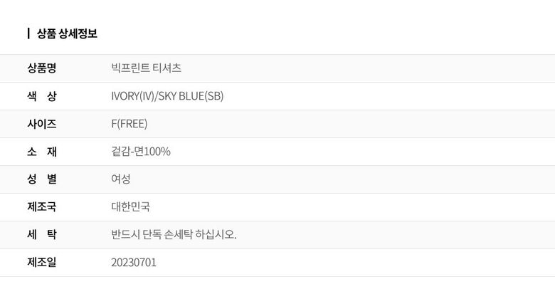 | 6. 세탁방법 및 취급시 주의사항 | 상세페이지 참조 |