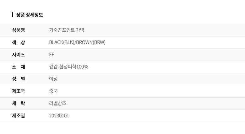 | 2. 소재 | 겉감-합성피혁100% |