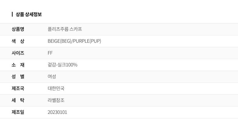 | 2. 소재 | 겉감-실크100% |