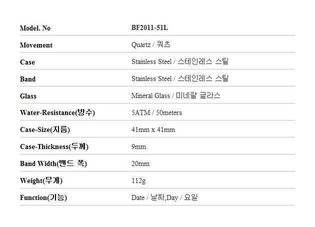 | 1. 소재 / 순도 / 밴드재질 | 블루/ 케이스 - 스테인리스스틸 / 밴드 - 스테인리스스틸 |