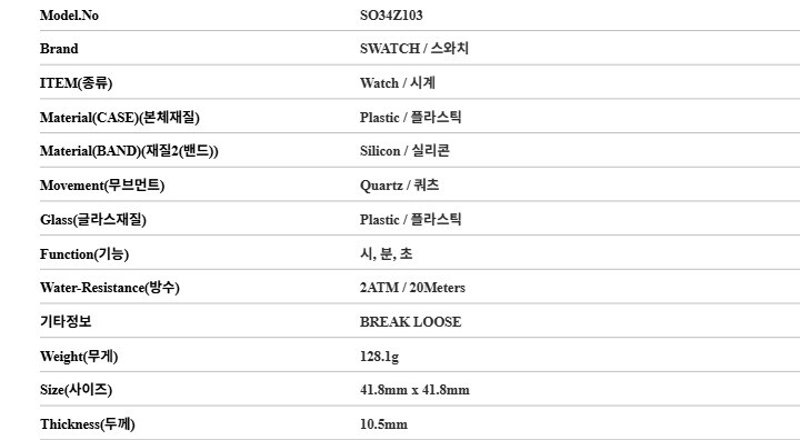 | 3. 제조사 | 스와치/MACHO-병행수입 |