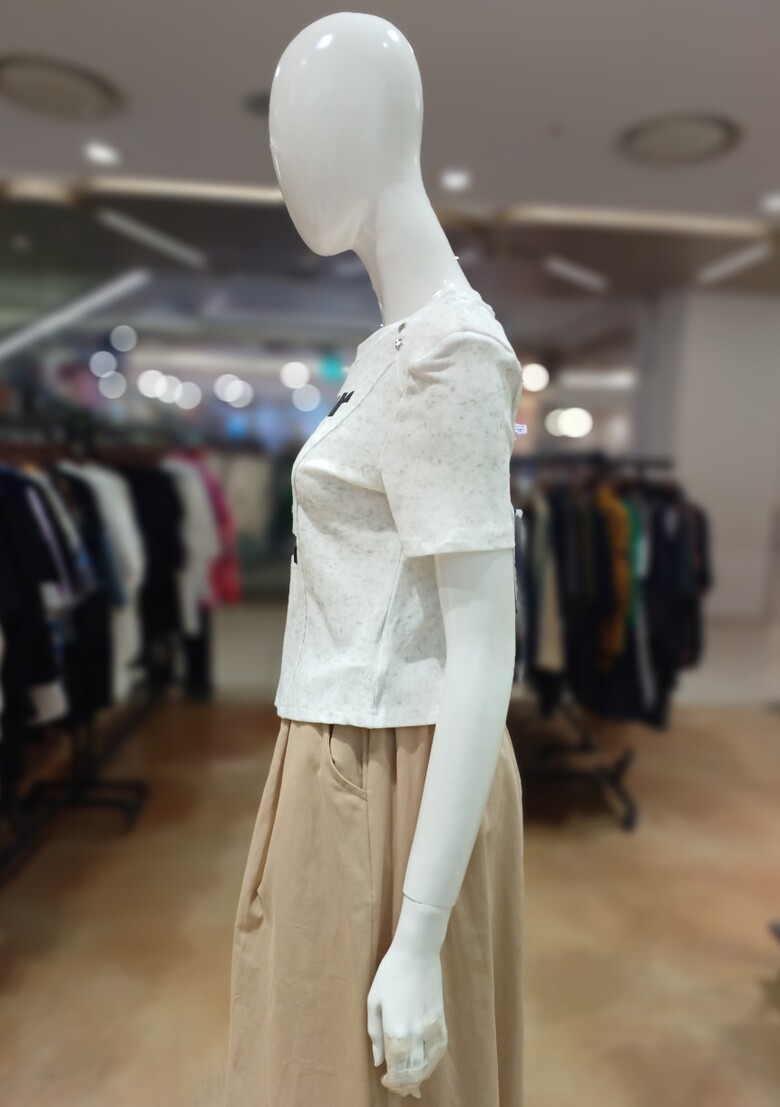 | 1. 제품 소재 (섬유의 조성 또는 혼용률을 백분율로 표시, 기능성인 경우 성적서 또는 허가서) | 폴리에스테르 65%, 레이온 35%, 레이스 |