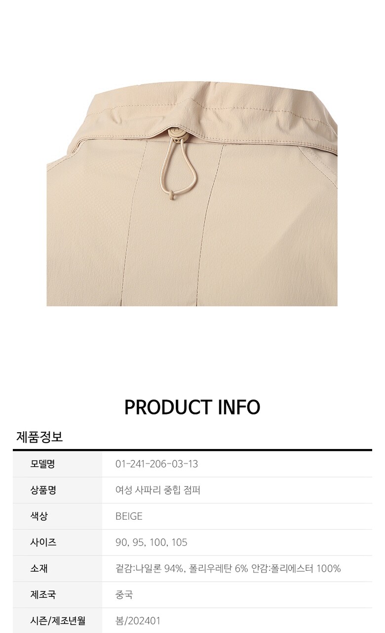 [보그너] 여성 사파리 중힙 점퍼 BEIGE