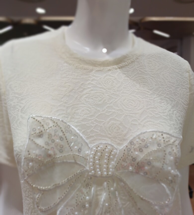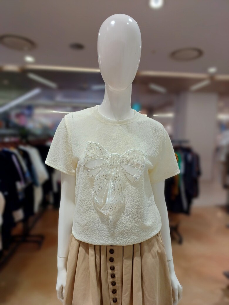 리본자수를 포인트인 라운드 티셔츠입니다