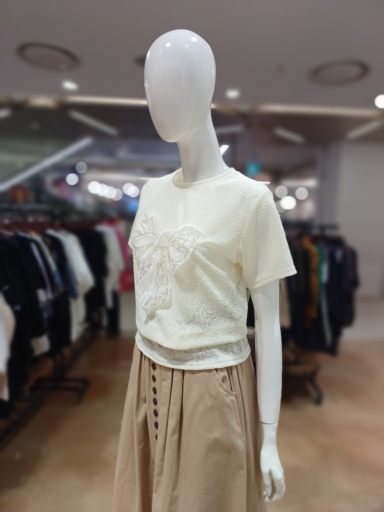 르니앤맥코이 레이스짜임 리본자수 반팔 티셔츠MM05TS528
