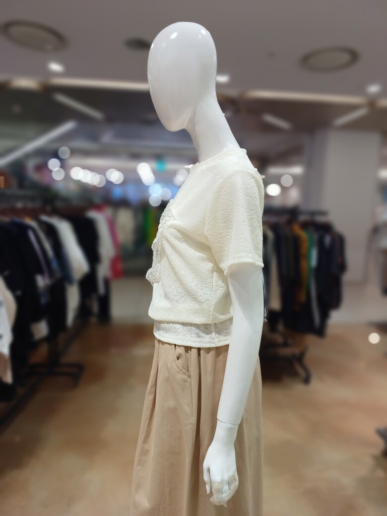 | 1. 제품 소재 (섬유의 조성 또는 혼용률을 백분율로 표시, 기능성인 경우 성적서 또는 허가서) | 폴리에스테르 100%, 레이스 |