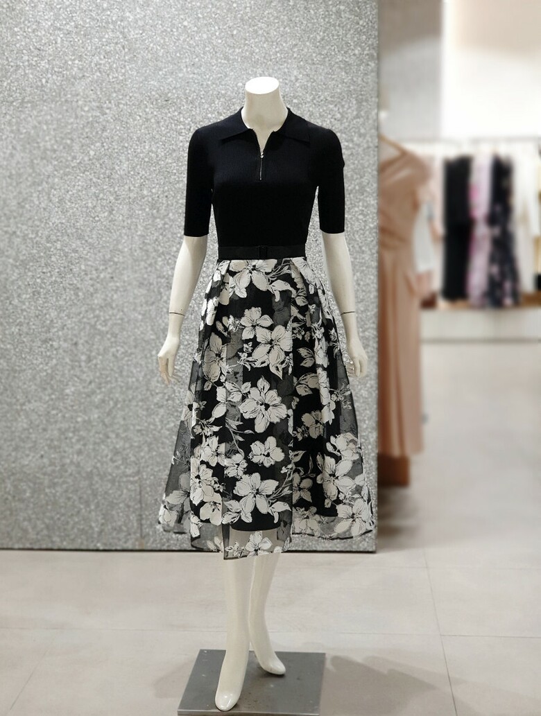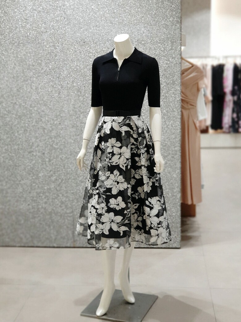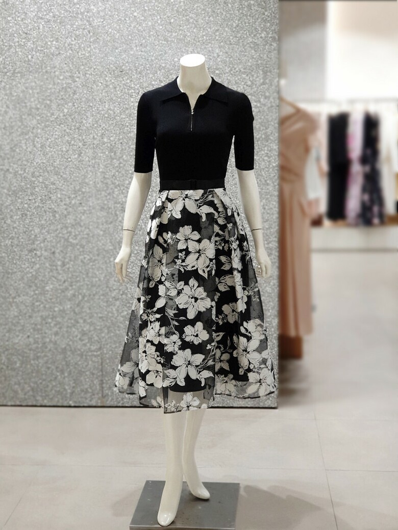 _판매종료니트 배색 플로럴 원피스 JR5-A0-OP512