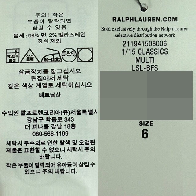 | 6. 세탁방법 및 취급시 주의사항 | 상품상세 참조 |