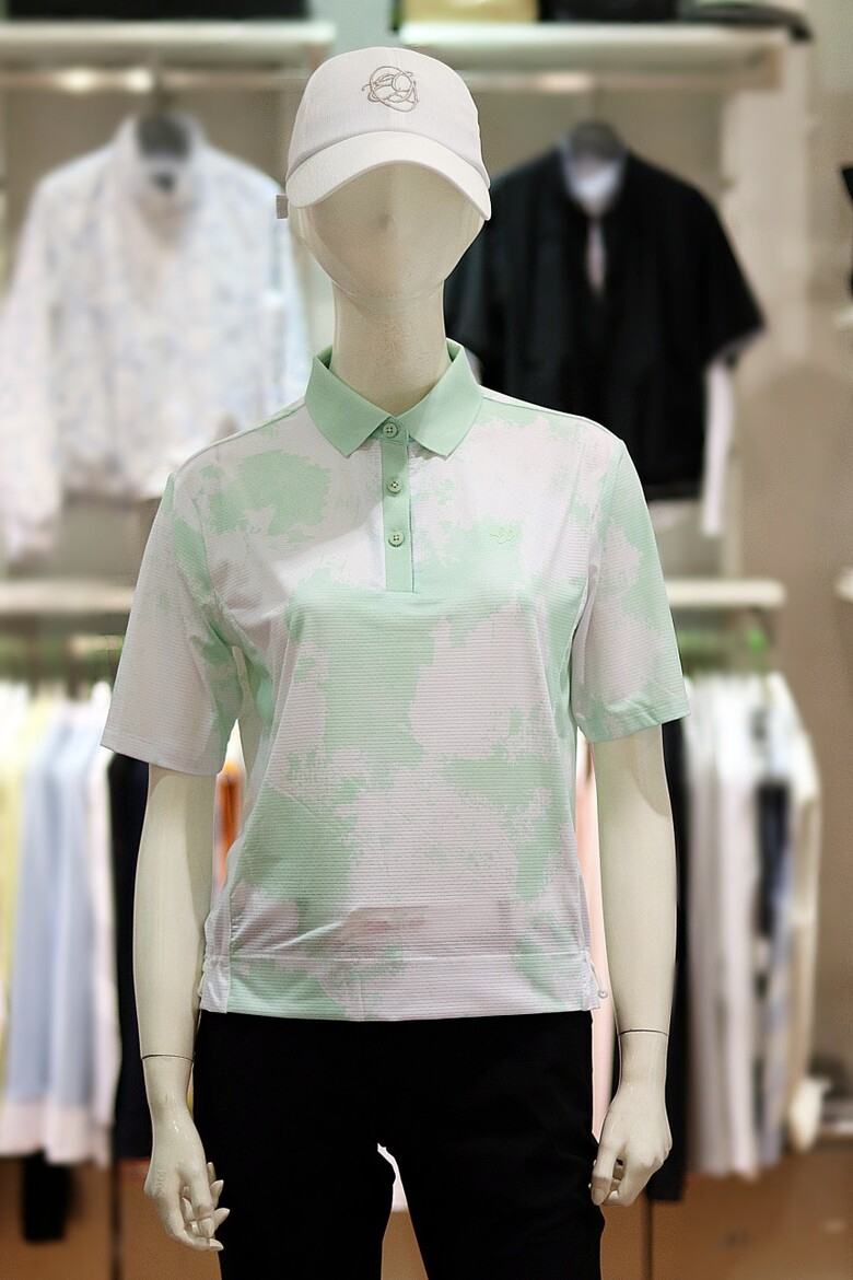 엘르골프 S/S 여성 크롭형 풀패턴 폴로 티셔츠 6J-45252-401