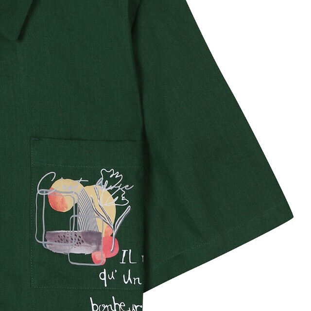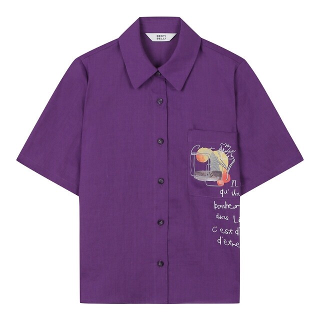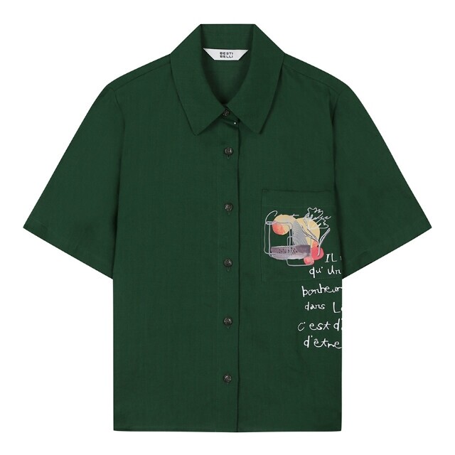 베스띠벨리 린넨 포켓 프린팅 카라블라우스BIBAG24580