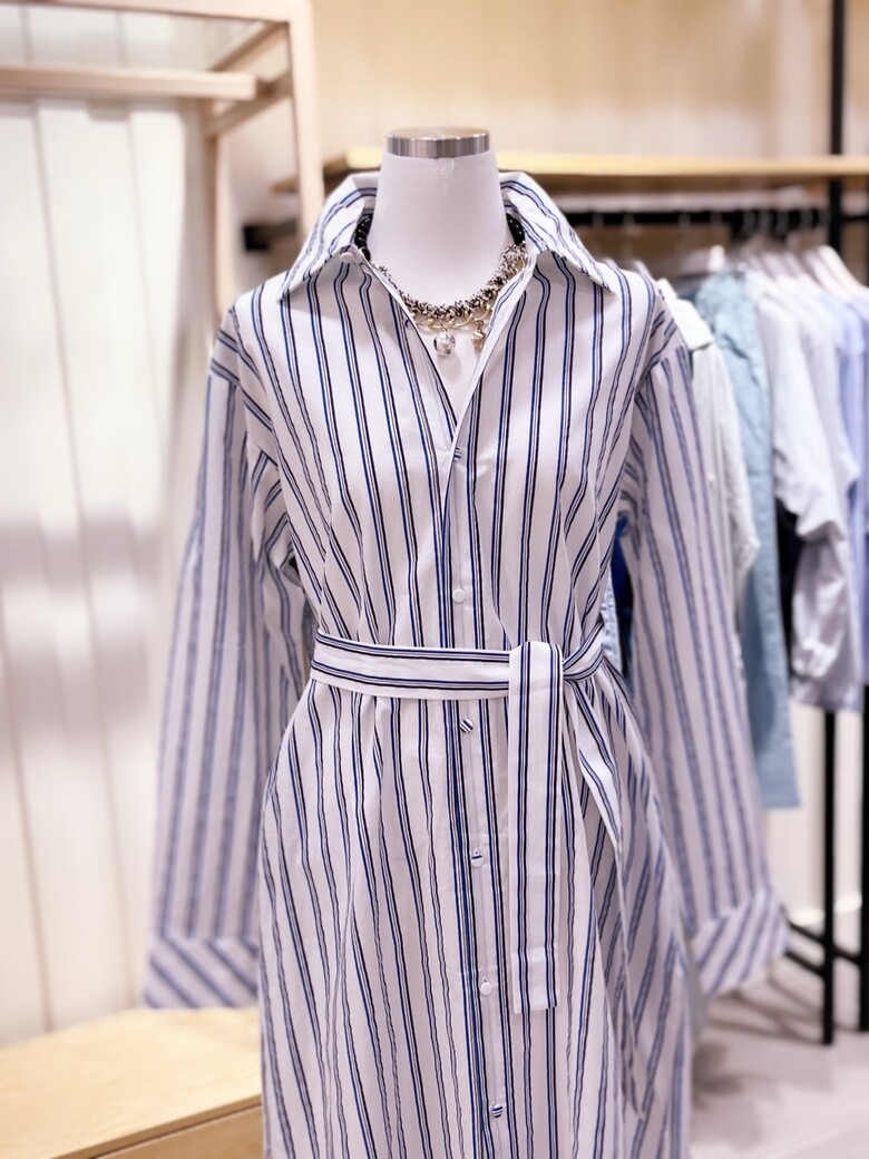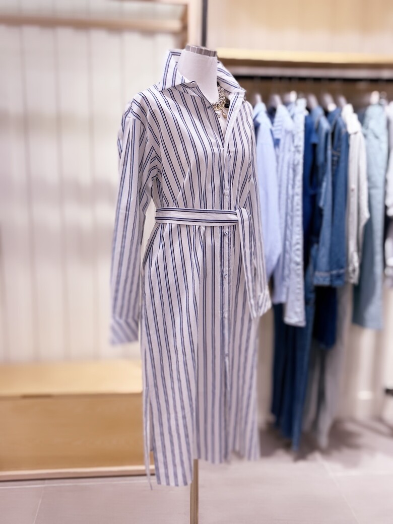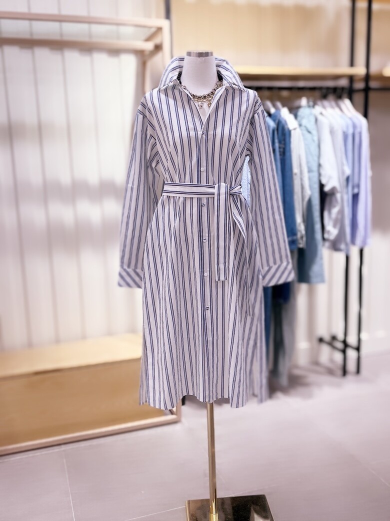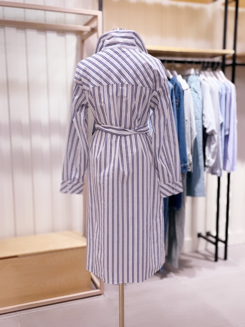 스트라이프 패턴으로 밋밋함 없이?롱 기장으로 멋스럽게 코디 가능하며?벨트끈이 있어 다양하게 코디 하기 좋은 스트라이프 롱 셔츠 입니다?