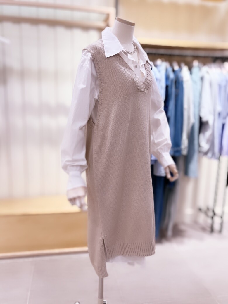 DBSE4KTF602_브이넥 앞뒤편차 롱니트 조끼