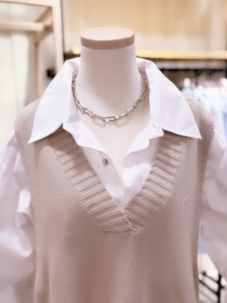 블라우스나 티셔츠와 레이어드 하기 좋으며?심플하고 유행타지 않는 디자인으로?매시즌 코디하기 좋은 아이템 입니다.