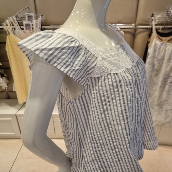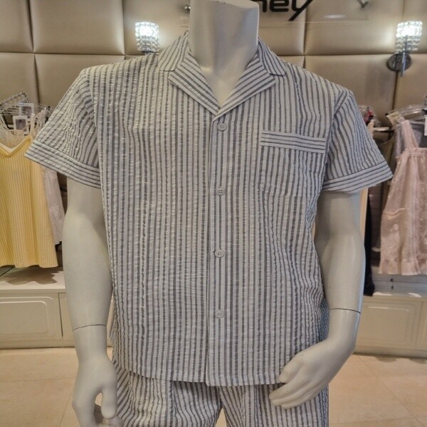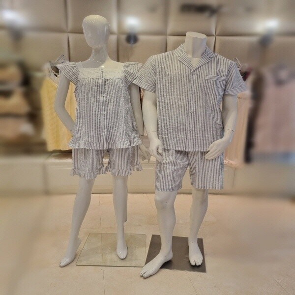 바바라 여름 커플잠옷세트남성반팔상의 7부바지세트잠옷여성반팔상의 5부바지세트시원하고 부드러운소재의 면혼방 제품 통기성 뛰어나며 스트라이프패턴 포인트실용적이며 가벼운 착용감