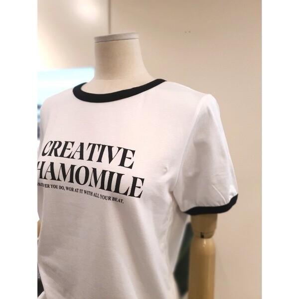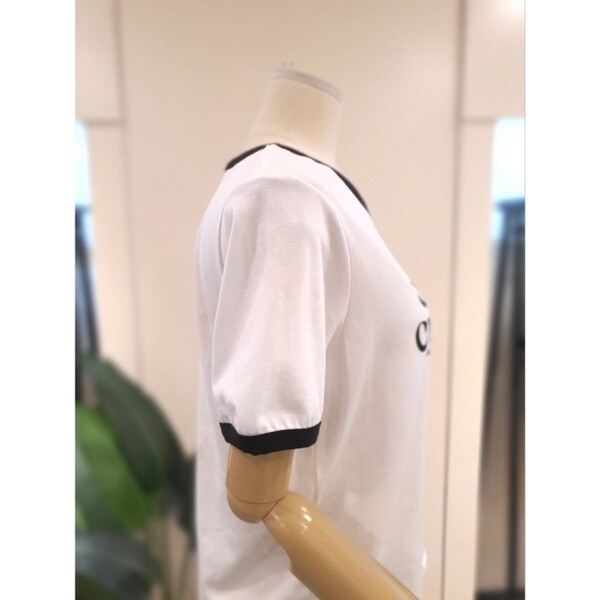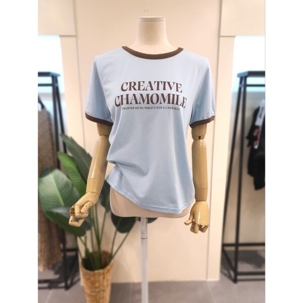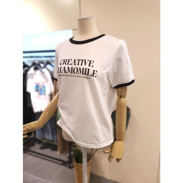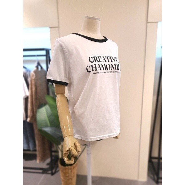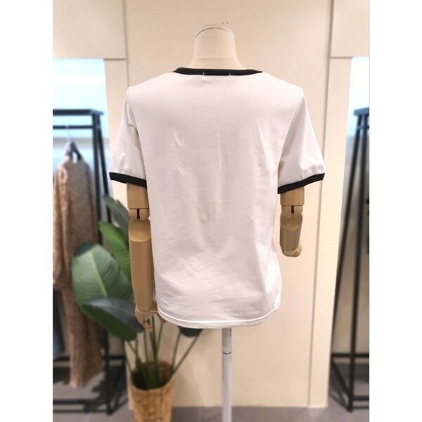 넥라인과 소매에 배색이 들어간 링거티셔츠입니다.