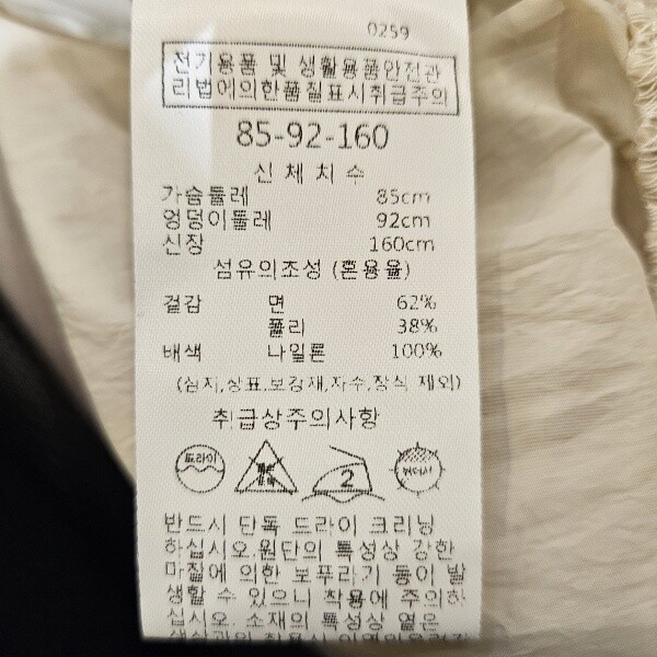 제품소재 : 겉감-면62%, 폴리에스터38%, 배색-나일론100%