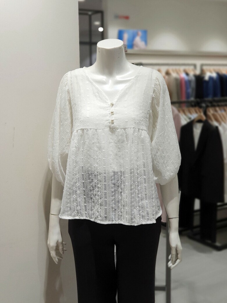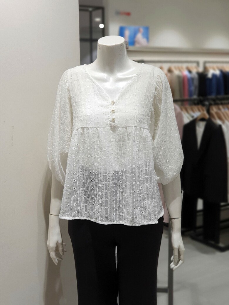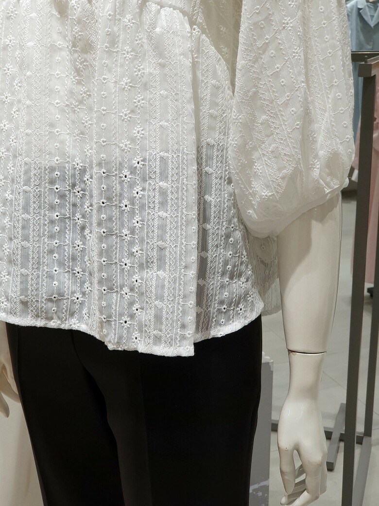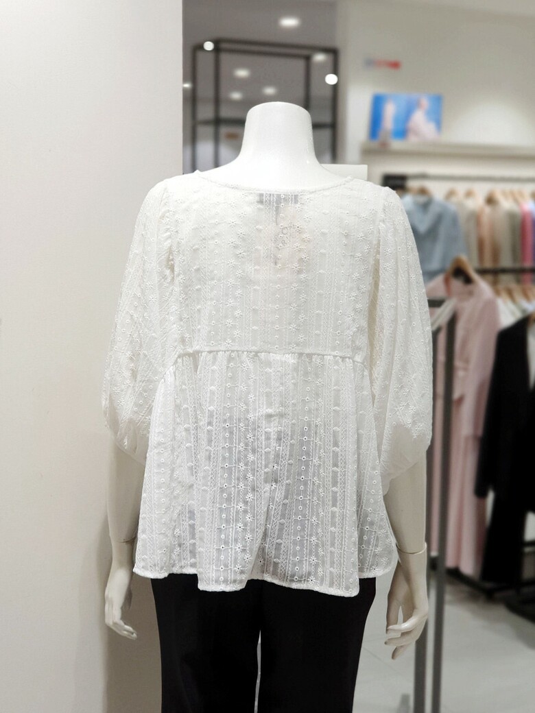 러블리한 무드의 펀칭 레이스 블라우스입니다.