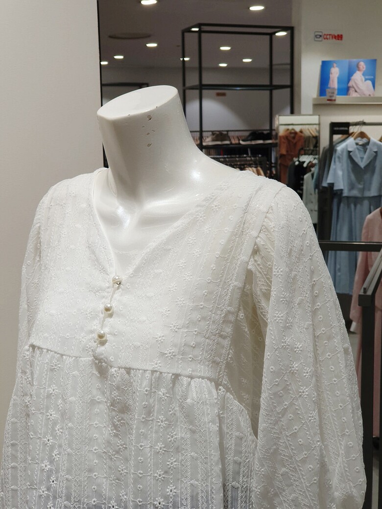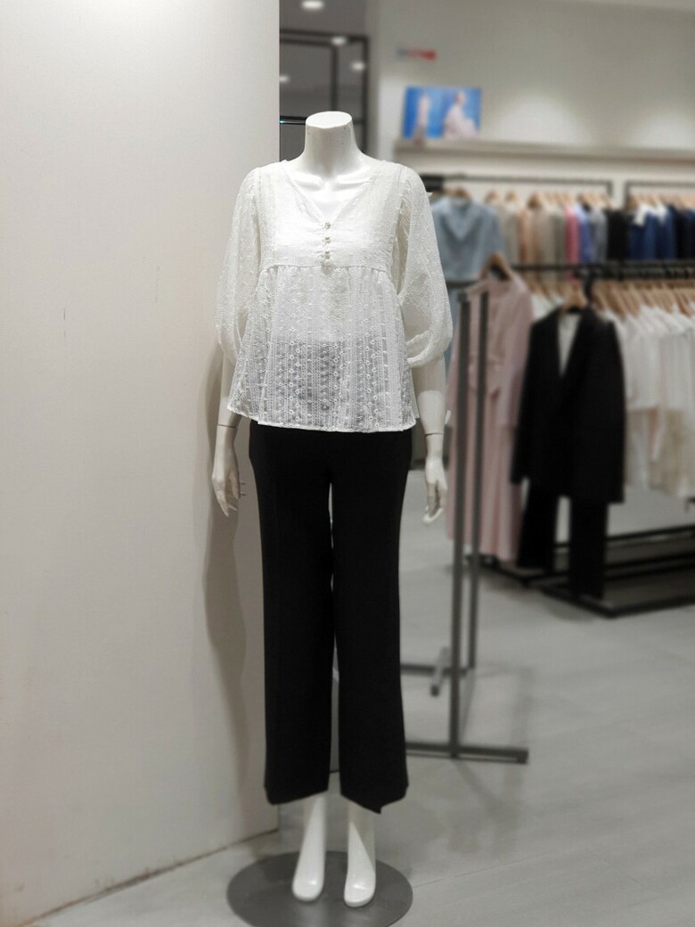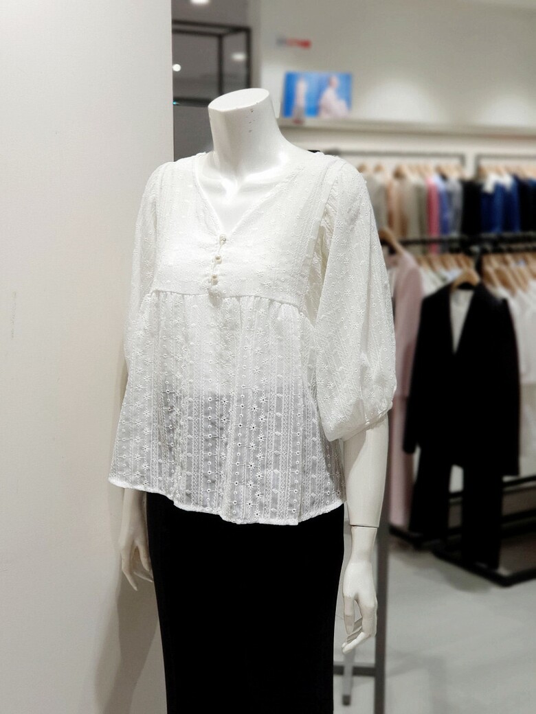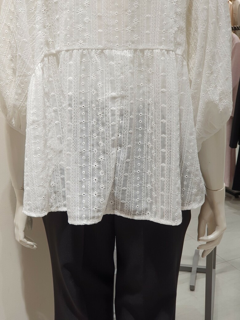 러블리한 무드의 펀칭 레이스 블라우스입니다.