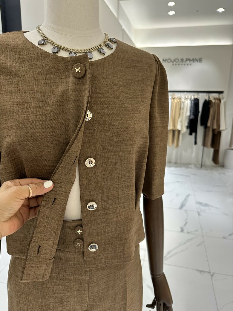 모조에스핀 노카라 핀턱 크롭재킷 S252MSF124