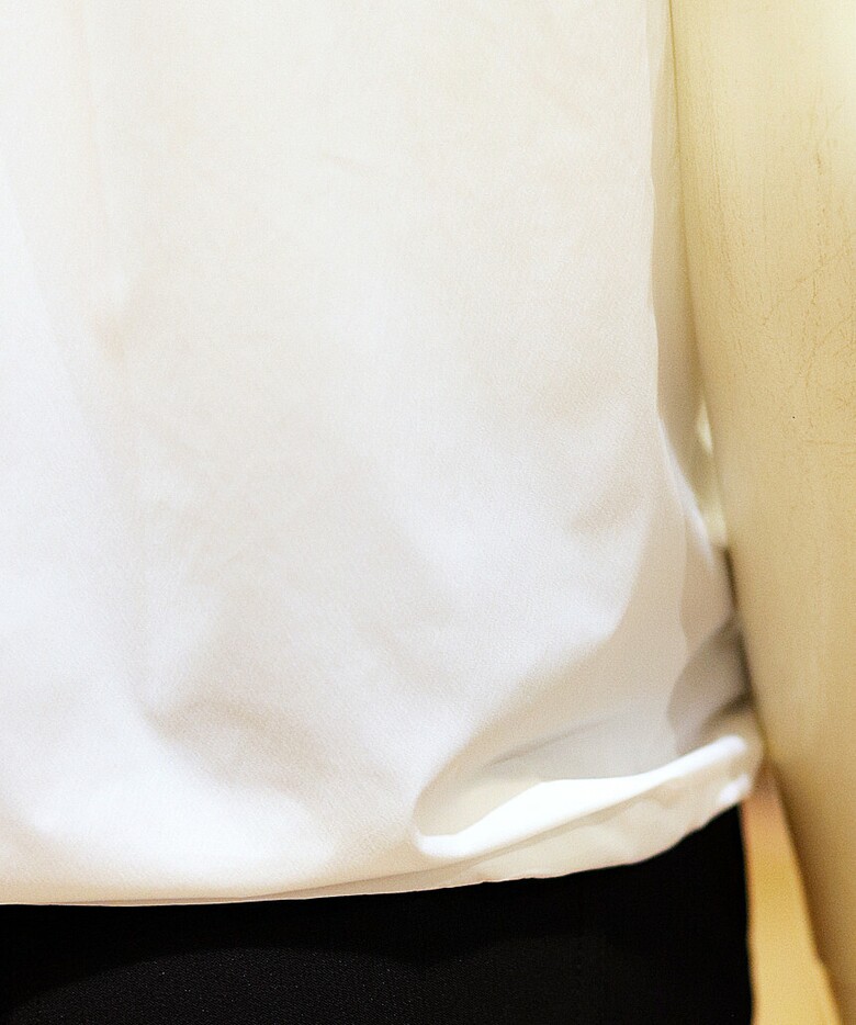 에리에 폴리 립 시보리 포인트를 주고 넥 라인을 따라 자연스럽게