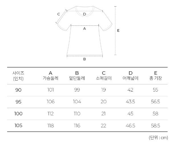 사이즈 단위는 cm이며,재는 위치에 따라 1~3cm사이즈 오차가