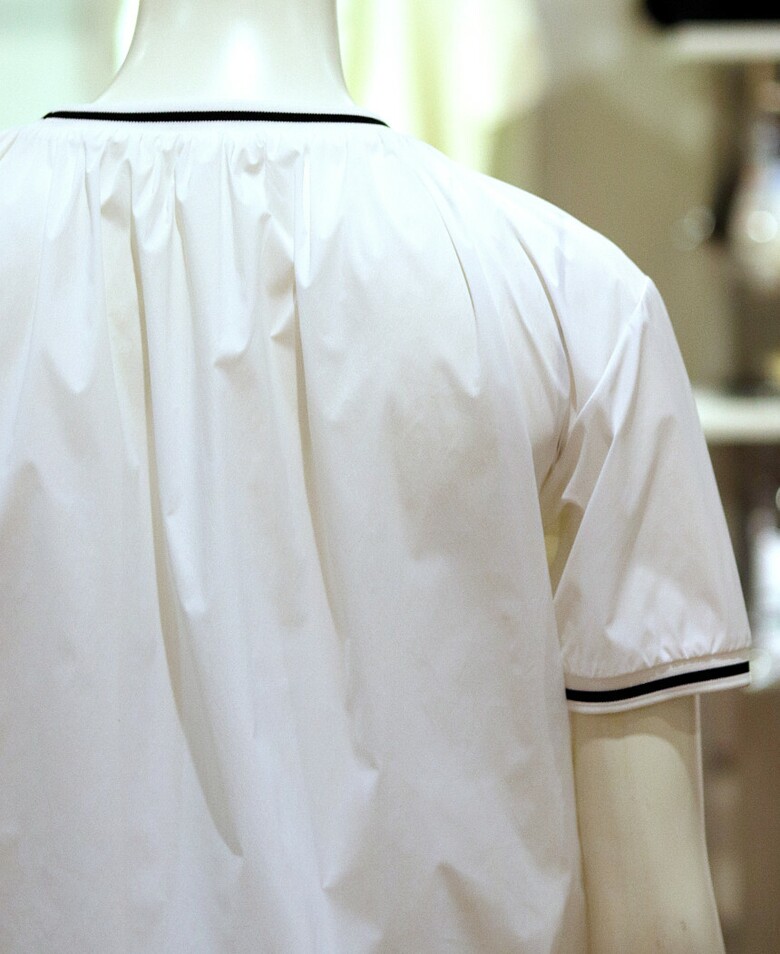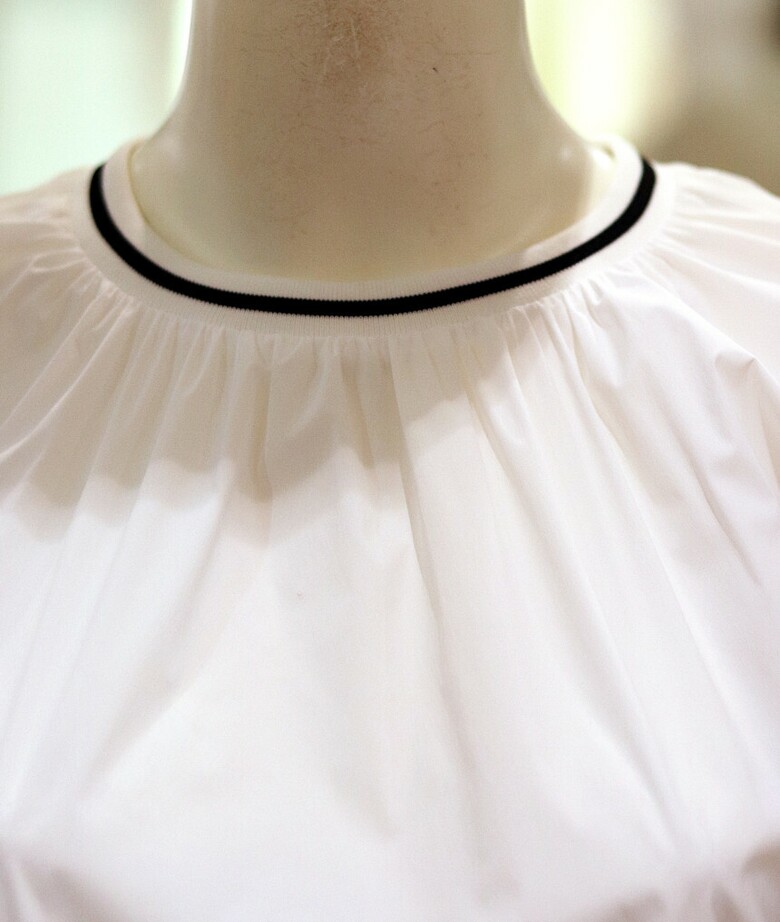 잡힌 셔링 포인트로 우아한 실루엣 연출이 가능한 아이템입니다