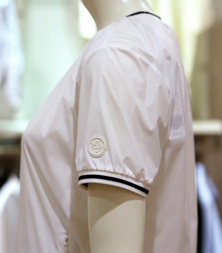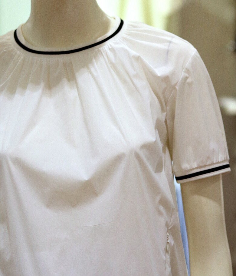 경량 나일론 2 way stretch 소재를 사용한 우븐 반팔 티셔츠입니다