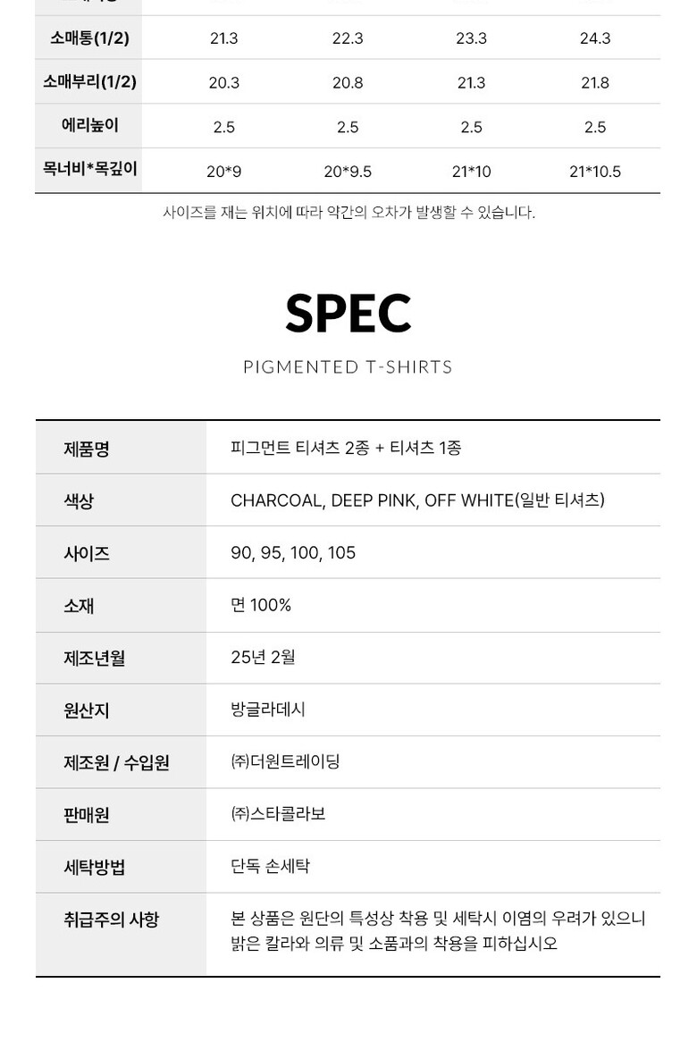 2. 색상 | 차콜, 딥핑크, 오프화이트(일반티셔츠) |