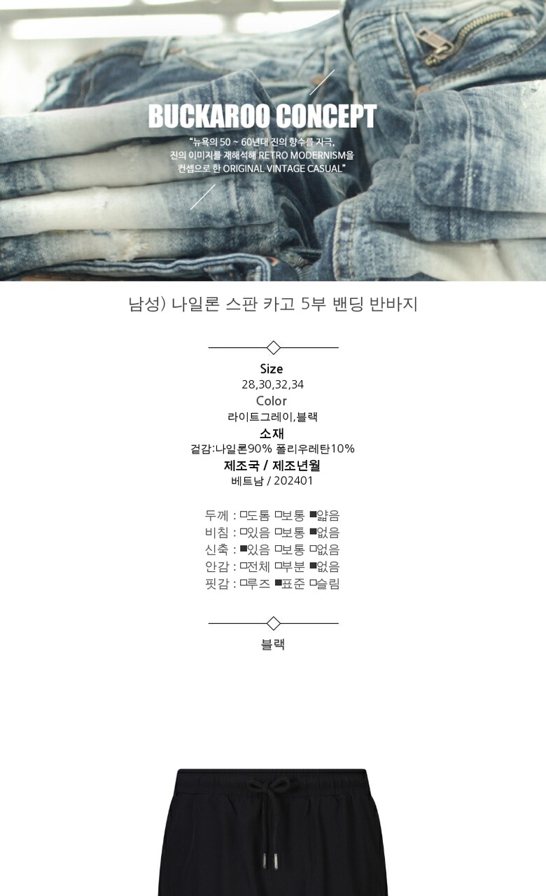 [버커루] 남성) 나일론 스판 카고 5부 밴딩 반바지 (B242PT010P)