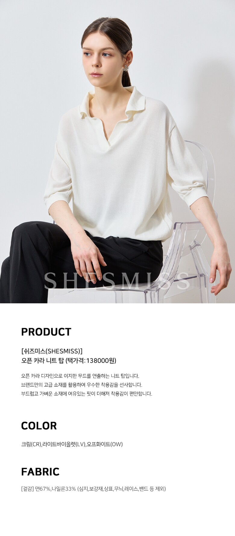 [쉬즈미스(SHESMISS)] 품격있는 오픈 카라 니트 탑 (택가격: 138000원)