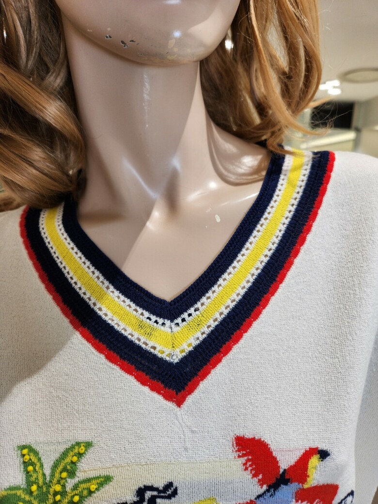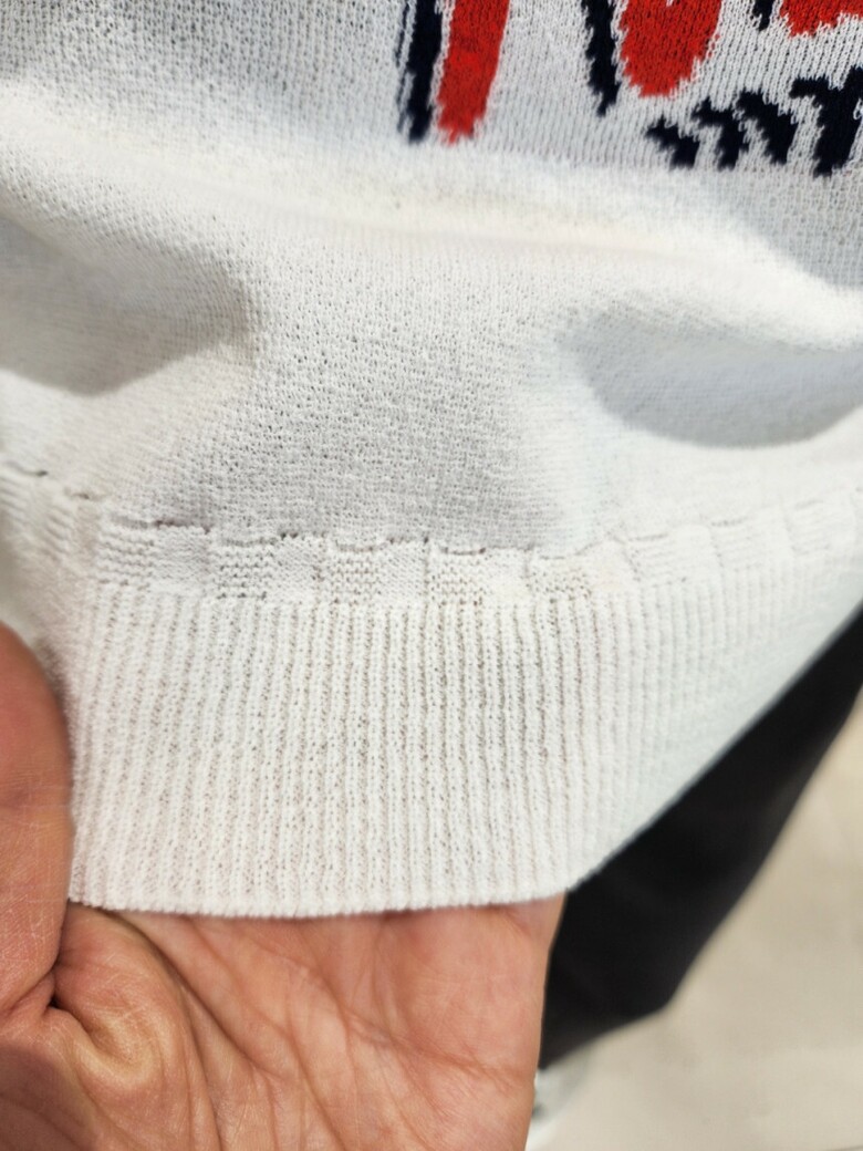 7.니트류는 자가드 프린트 기법으로 제작되어 앞부분에 예쁜 프린트처리가 되어 있습니다
