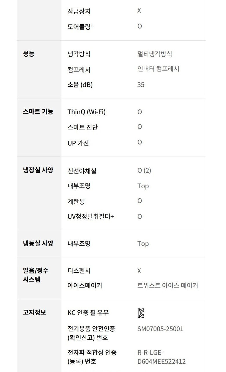6. 크기/무게(폭x높이x깊이)(cm) 831 x 1,860 x 741mm,612L,일반형냉장고