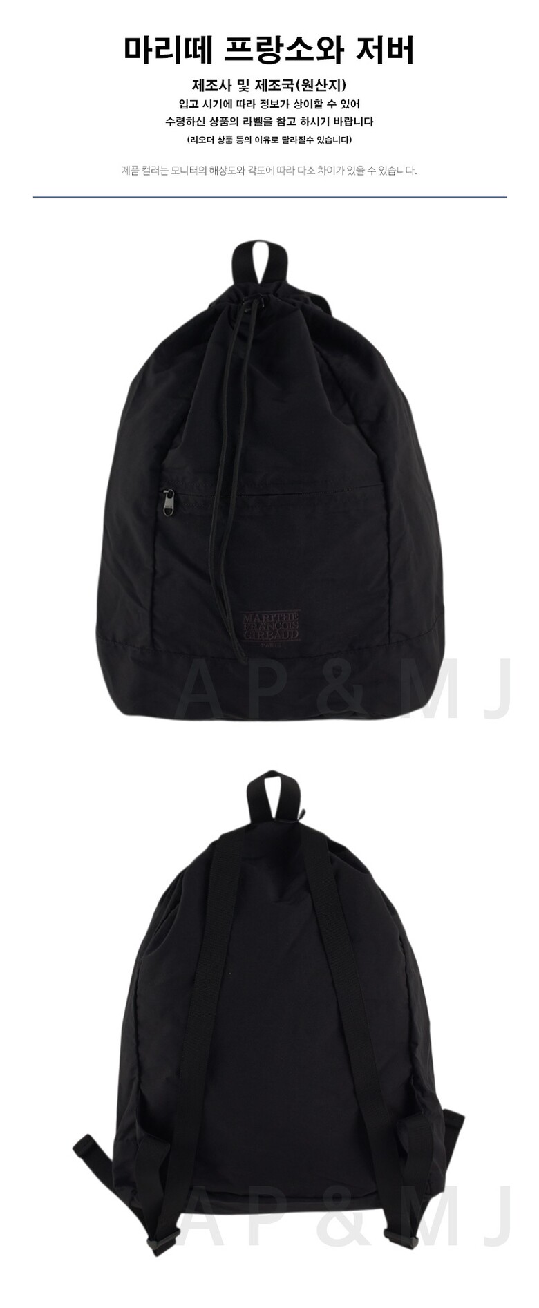 마리떼 클래식 로고 지퍼 포켓 백팩 MFG45SBG209 BLK