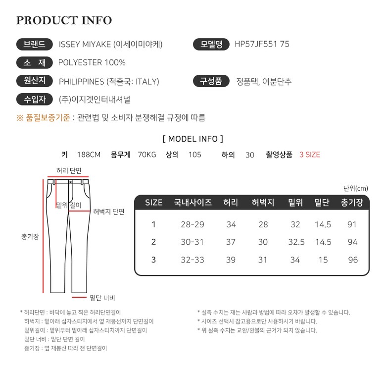| 1. 제품 소재 (섬유의 조성 또는 혼용률을 백분율로 표시, 기능성인 경우 성적서 또는 허가서) | 상세페이지 참조 |