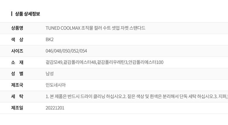 [T.I FORMEN] TUNED COOLMAX 조직물 컬러 수트 셋업 자켓 스탠다드_M234MTJ712M
