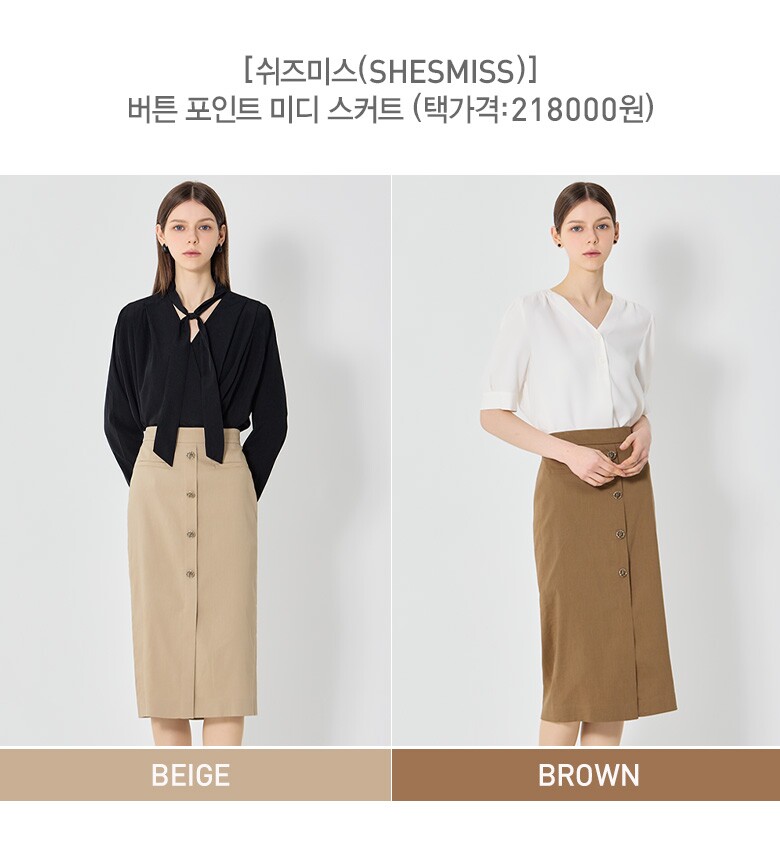 [쉬즈미스(SHESMISS)] 페미닌 버튼 포인트 미디 스커트 (택가격: 218000원)
