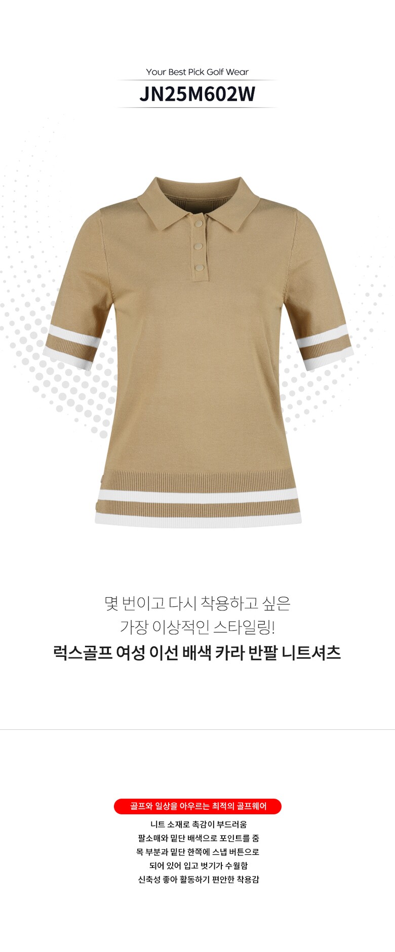 골피아 JN25M602W 여성 이선 배색 카라 반팔 니트셔츠