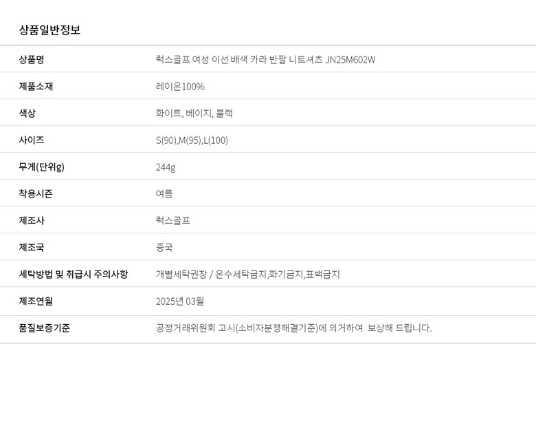 | 1. 제품 소재 (섬유의 조성 또는 혼용률을 백분율로 표시, 기능성인 경우 성적서 또는 허가서) | 상세설명참고 |